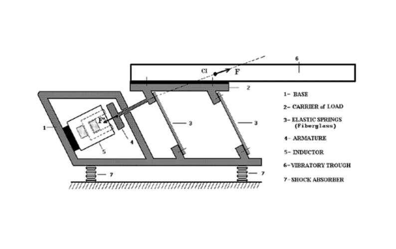 In caso di un vibratore elettromagnetico lineare il sistema sarà composto da un’unità base, una bobina, delle molle, un magnete e un canale.